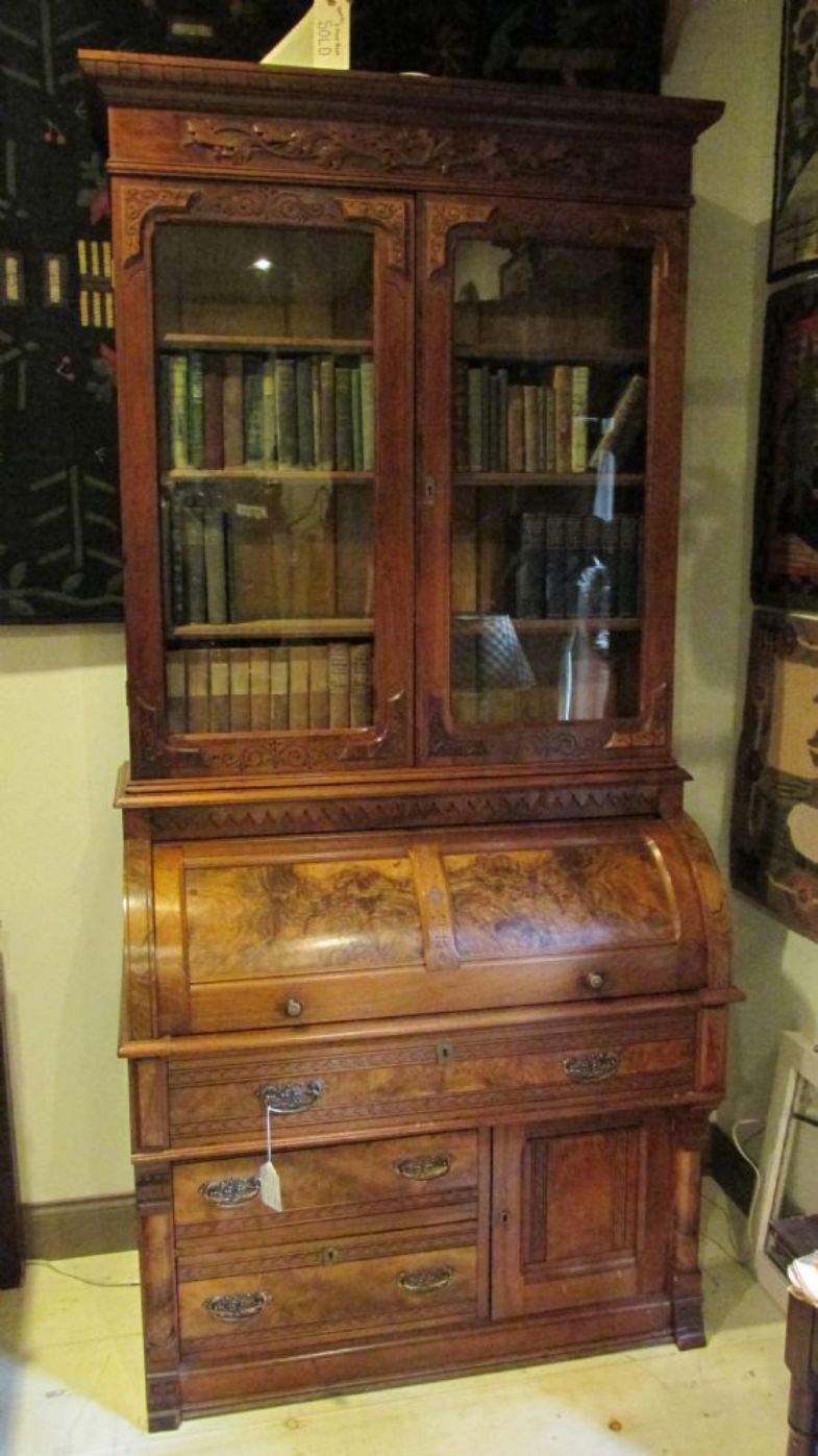 Beautiful burl walnut cylinder roll desk. Fresh from a local estate. - By: