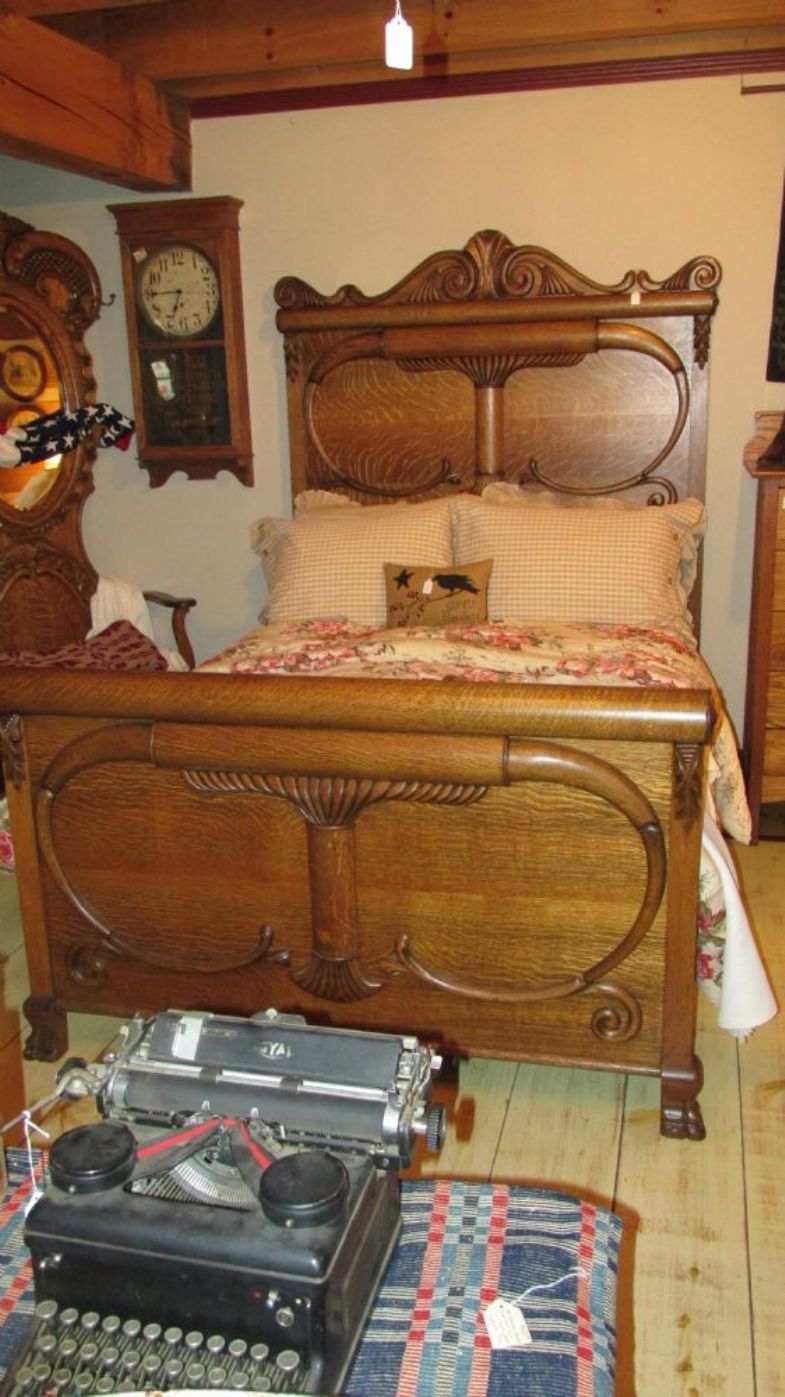 Great heavily carved oak full-sized bed. Ready for your home. - By: