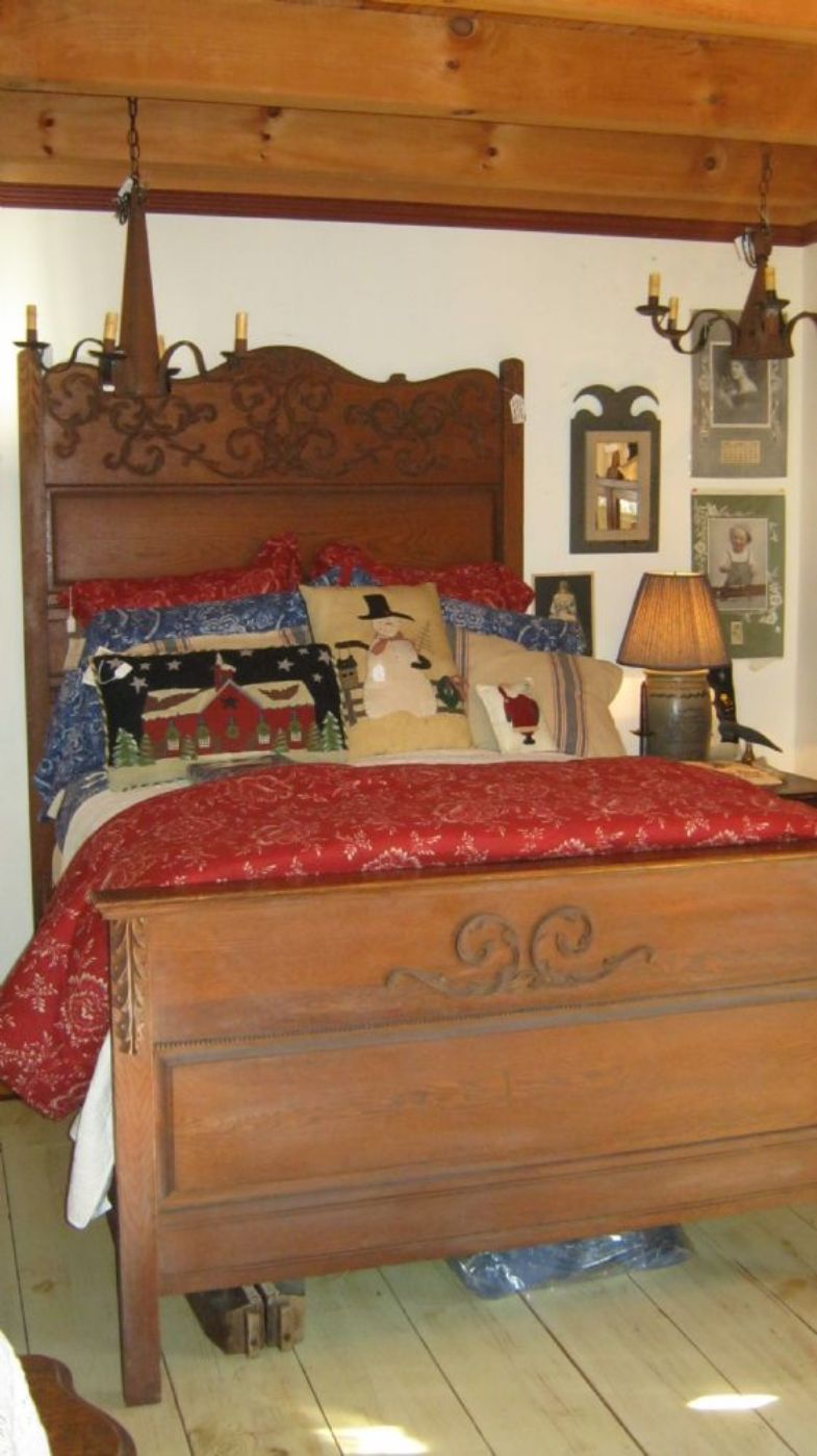 Photo: HIGH BACK OAK BED WITH CARVING AND RAISED PANELS.