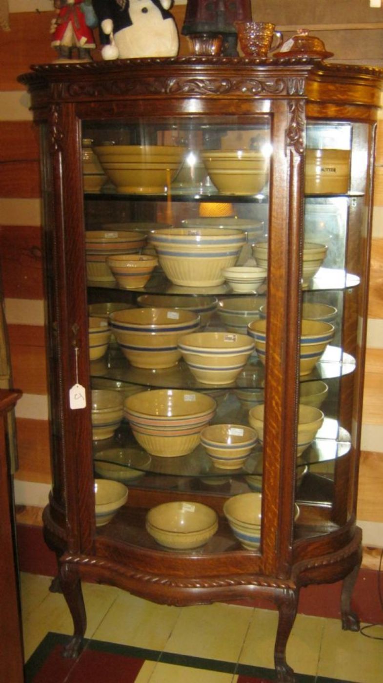 Photo: GORGEOUS S-CURVED CHINA CABINET. CLAW FEET, ORIGINAL FINISH.