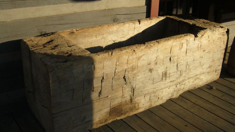 Early primitive salt or meat box. Hand hewn. Good bottom. Measures approx. 2' by 2' by 6' long. Price $850. - By: Lakes Online Member