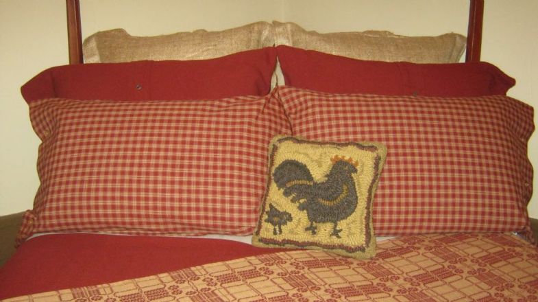 Custom Made Red Check Buttoned Homespun Std Cases $48/pair. - By: