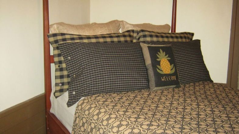 Custom Made "Grandma's Bed" Collection. Black Window Pane Buttoned Homespun Std. Cases $48/pair. - By: Lakes Online Member